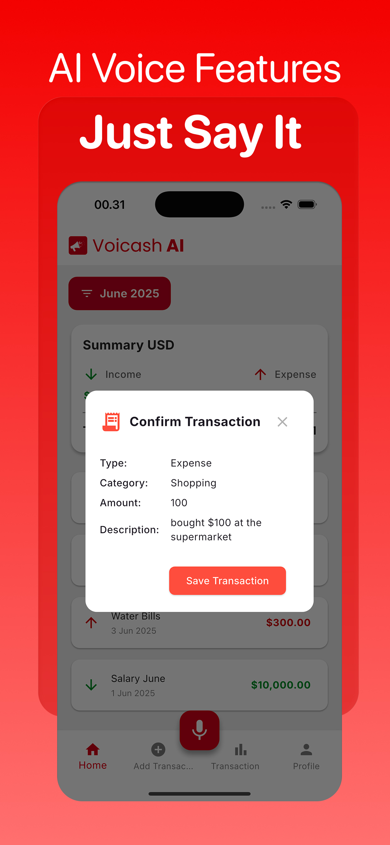 Aplikasi pencatat keuangan pribadi dengan fitur voice input dan analisis pengeluaran.
